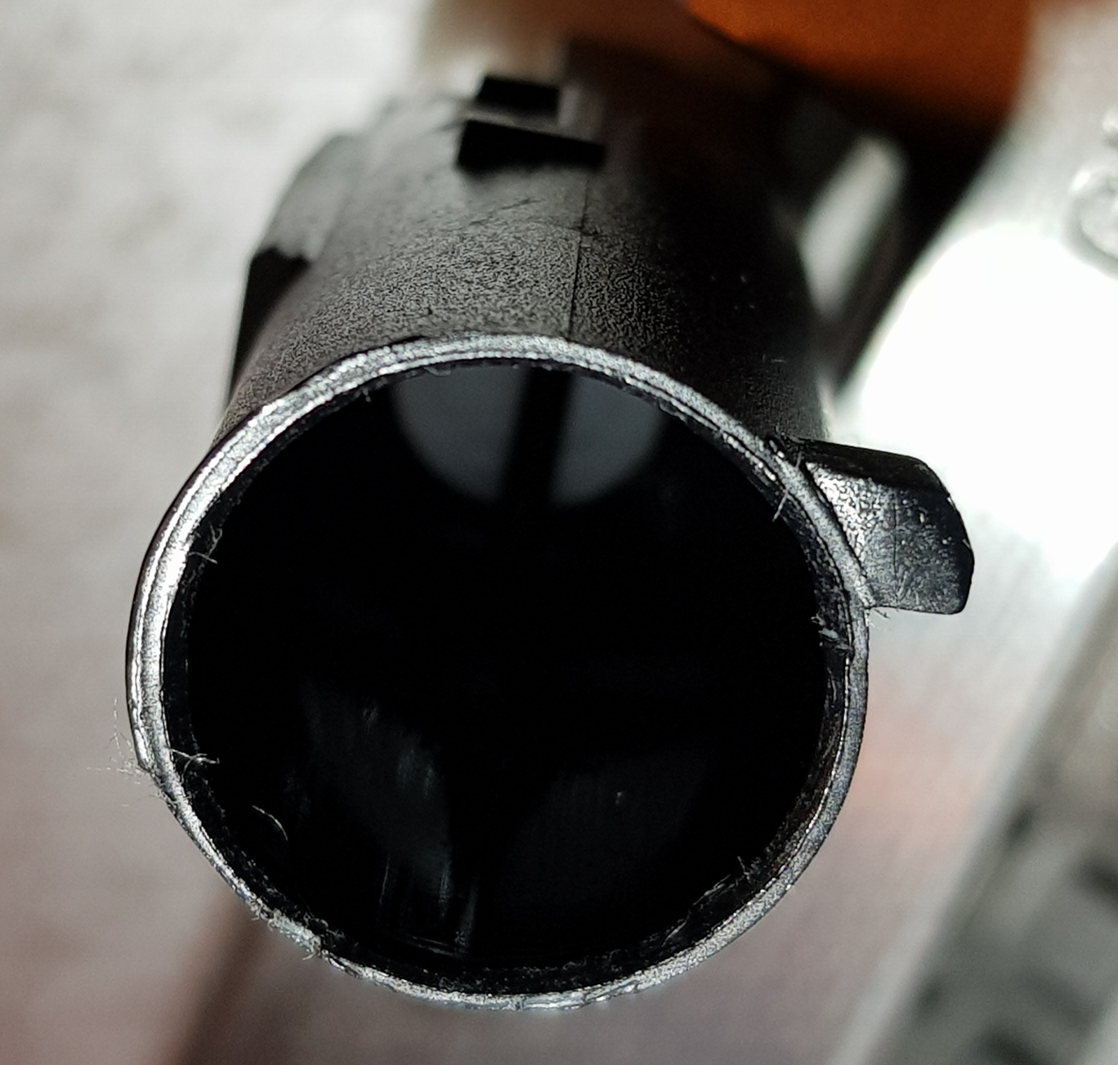 När jag provar nozzlen i bakre mynningen på pipan känns passningen rätt tight. Tror det sitter en gummibussning i pipan alldeles bakom hopup-klacken och den greppar rätt hårt om nozzlen från BBU. Gissar att det ska vara tätt där när skottet går, men kan den vara för tight? Ska det smörjas där?