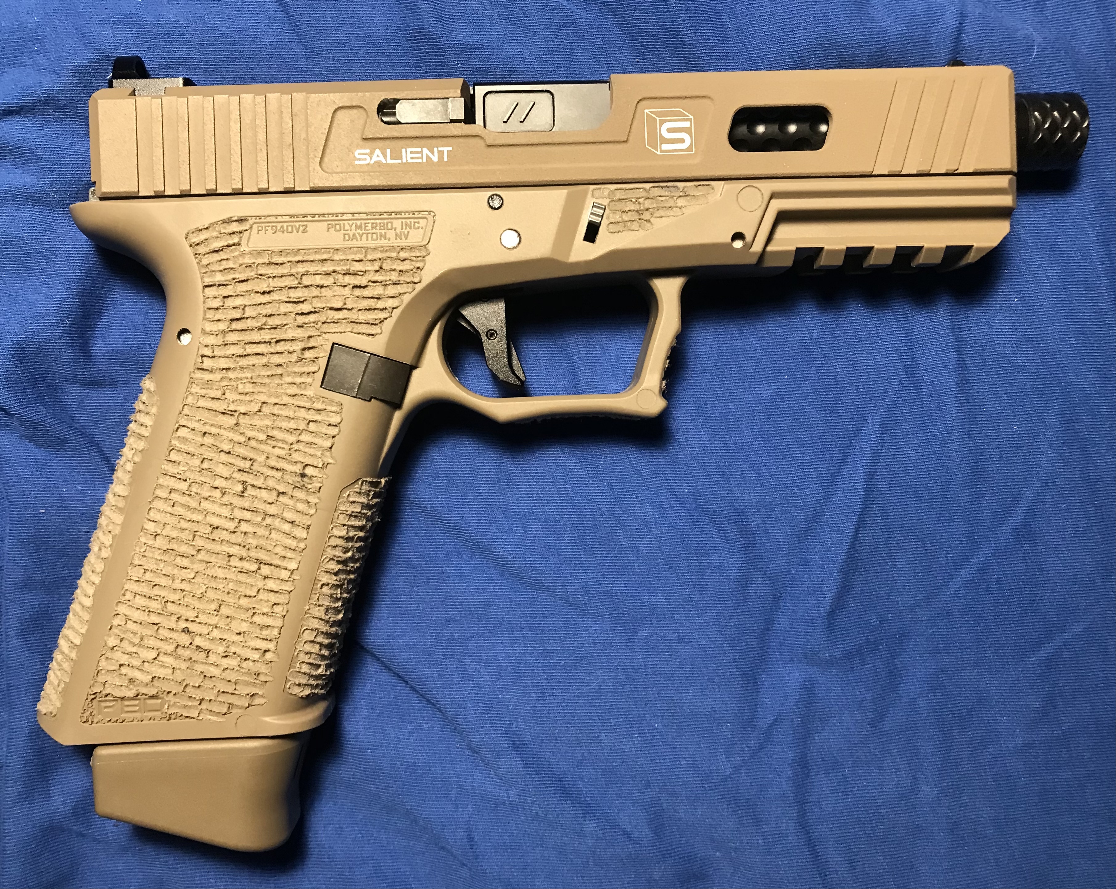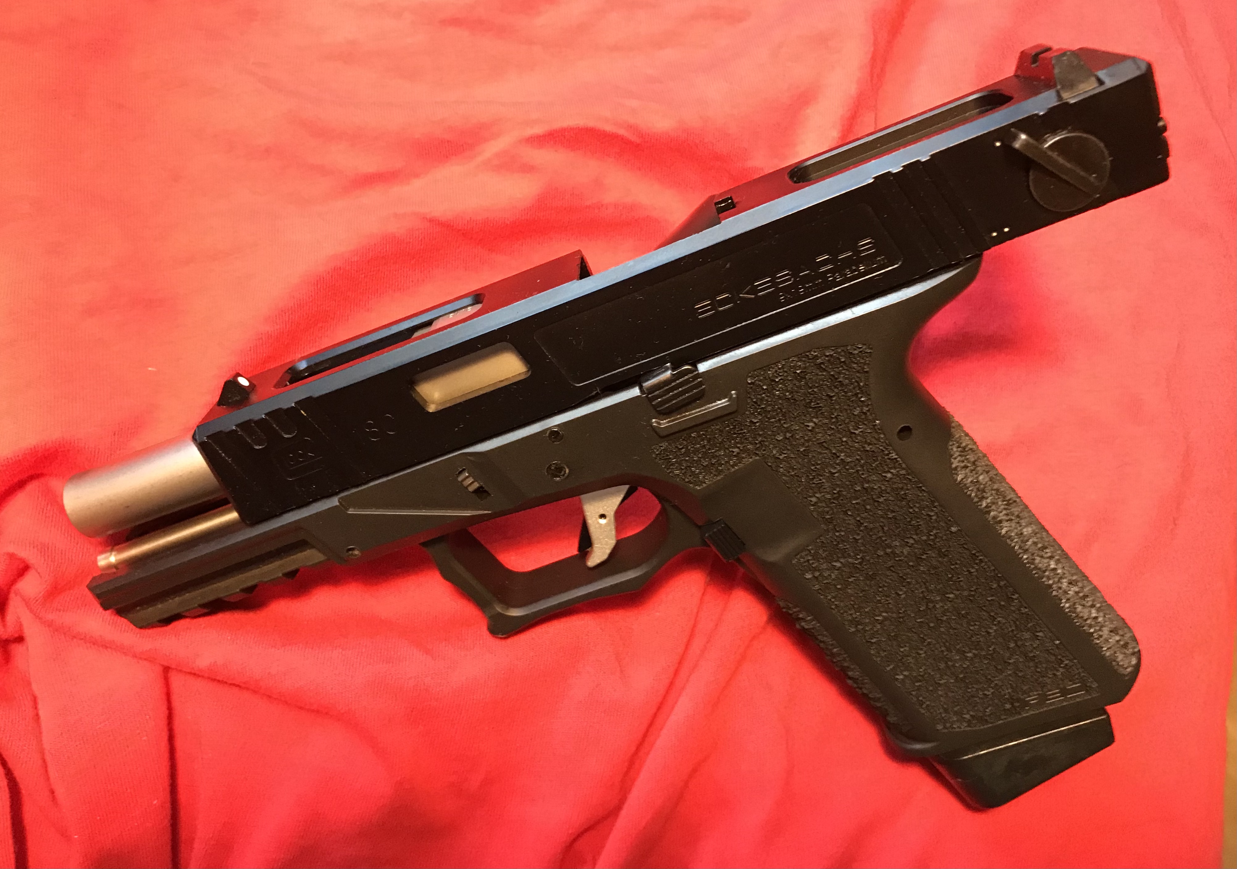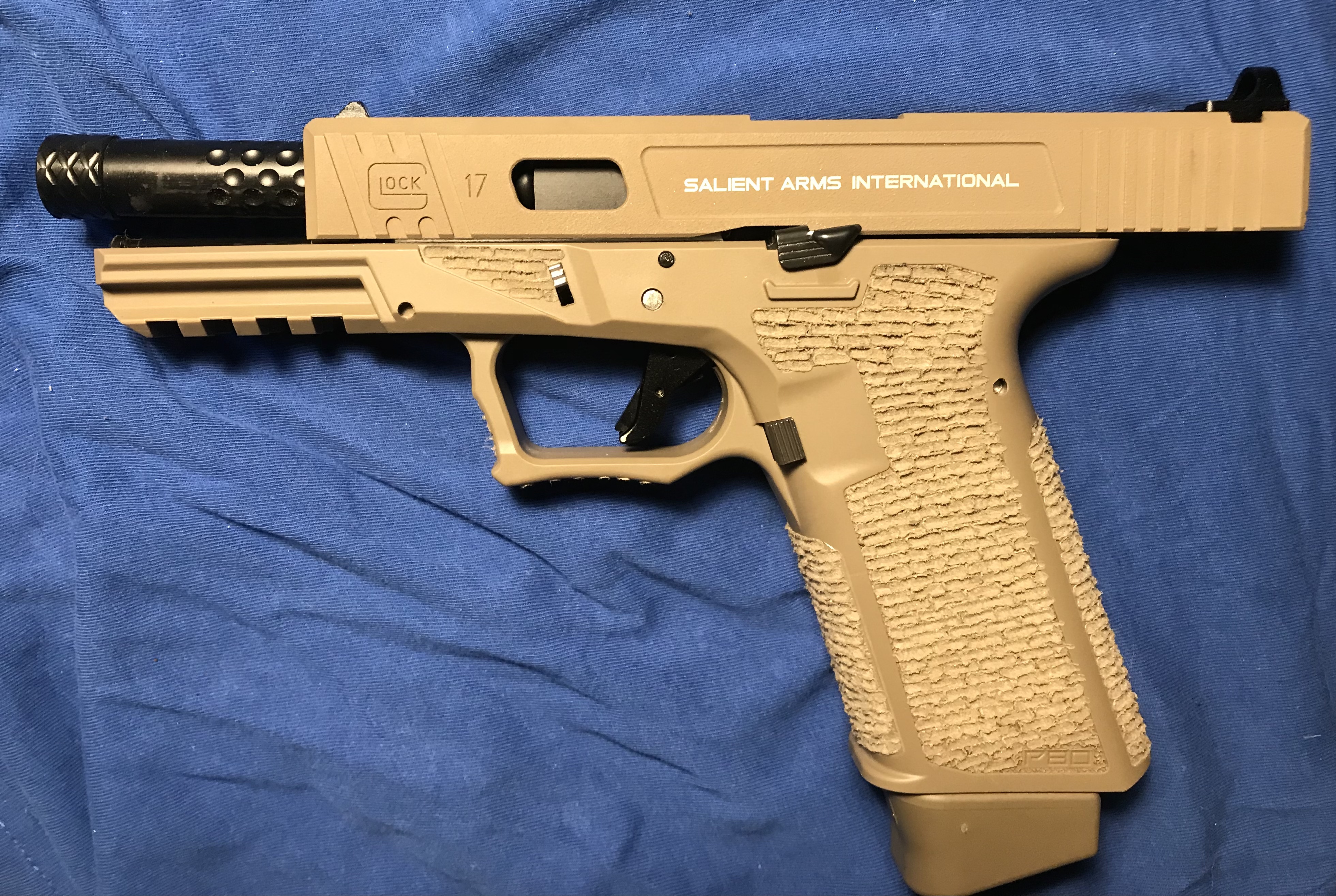 Blir aldrig nöjd med denna så satte på en SAIslide i fde. Normalt sett tycker jag SAI är astråkigt men tänkte en helbrun med p80 frame kan ju bli lite fräsigt.